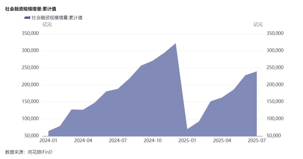 8月13日,人民银行披露金融统计数据显示,7月末,广义货币(M2)余额329.94万亿元,同比增长8.8%。初步统计,2025年前7个月社会融资规模增量累计为23.99万亿元,比上年同期多5.12万亿元。