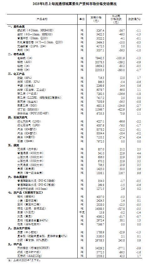 中国网财经8月14日讯国家统计局网站消息,14日,据对全国流通领域9大类50种重要生产资料市场价格的监测显示,2025年8月上旬与7月下旬相比,18种产品价格上涨,29种下降,3种持平。